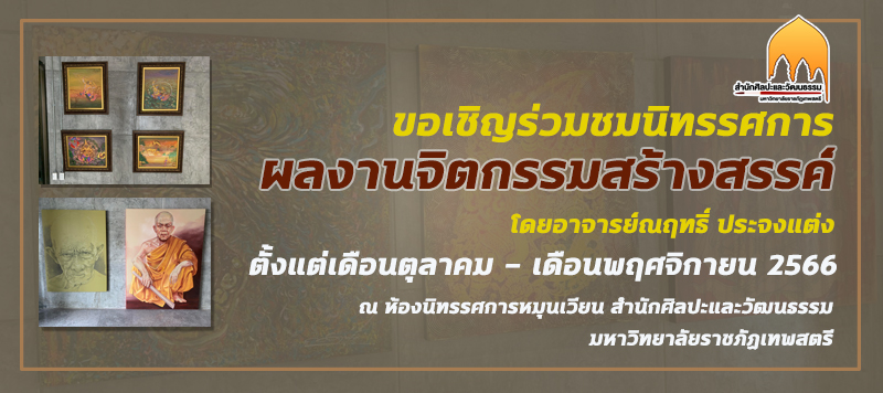 สำนักศิลปะและวัฒนธรรม มหาวิทยาลัยราชภัฏเทพสตรี ขอเชิญร่วมชมนิทรรศการผลงานจิตรกรรมสร้างสรรค์ โดยอาจารย์ณฤทธิ์ ประจงแต่ง ผู้อำนวยการสำนักศิลปะและวัฒนธรรม ตั้งแต่บัดนี้ - เดือนพฤศจิกายน 2566 ณ ห้องนิทรรศการหมุนเวียน ชั้น 1 สำนักศิลปะและวัฒนธรรม มหาวิทยาลัยราชภัฏเทพสตรี.....ฟรีไม่มีค่าใช้จ่าย